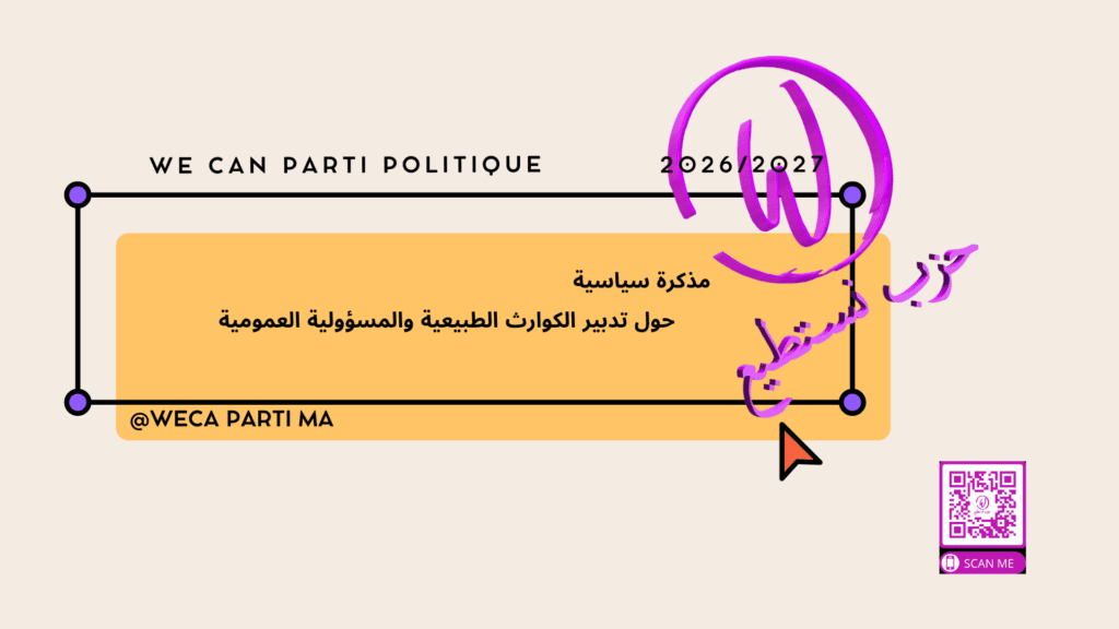 وعليه، يدعو حزب “نستطيع” إلى جعل الوقاية من الكوارث والتكيّف معها سياسة عمومية دائمة، لا رهينة للمواسم الانتخابية، ولا خاضعة لمنطق التدبير الظرفي، واضعًا هذه المذكرة رهن إشارة كل المؤسسات المعنية، منفتحًا على كل نقاش جاد، ومتمسكًا بأن الإصلاح الحقيقي يبدأ حين نضع حياة المواطن وكرامته فوق كل اعتبار.